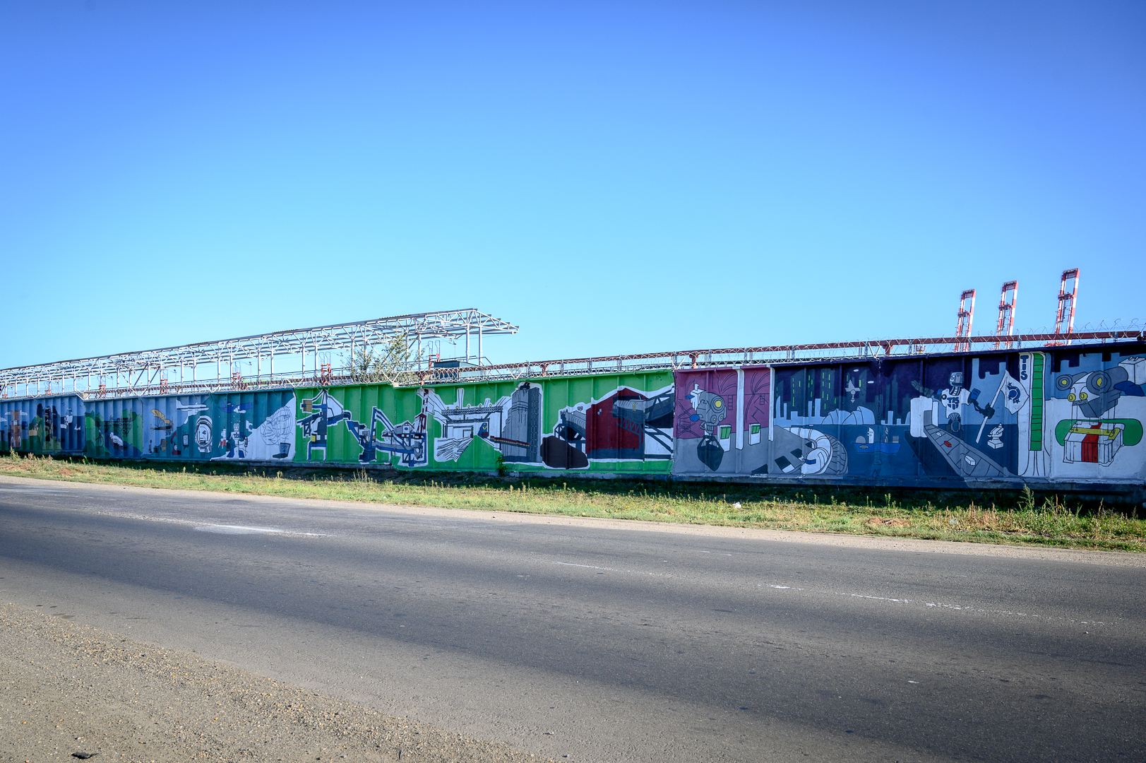 Как рассказали Культурометру в ТИС, идея проекта родилась на одном из празднований дней рождения предприятия, когда сотрудники разрисовывали стену контейнерного терминала. Процесс рисования оказался таким увлекательным, что на следующий год решили замахнуться на арт-стену. Сотрудники с нетерпением ждали проекта, а саму концепцию стрит-арта придумал сотрудник контейнерного терминала Алексей Убийский, подчеркнули в ТИС.