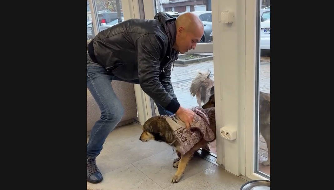 Магазин смартфонов в Одессе пускает внутрь бездомных собак во время дождя