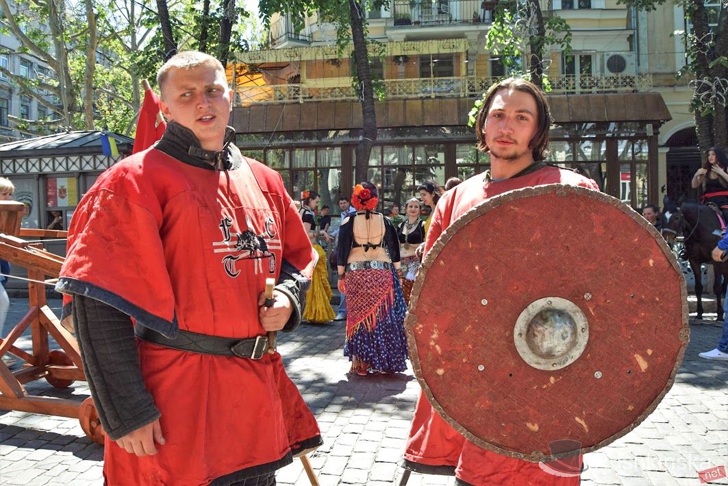 На Дерибасовской сегодня состоялось костюмированное шествие средневекового короля со свитой. Все они — участники фестиваля средневековой культуры «Пороховая башня», который стартует на этих выходных в парке Шевченко на Суворовской аллее.