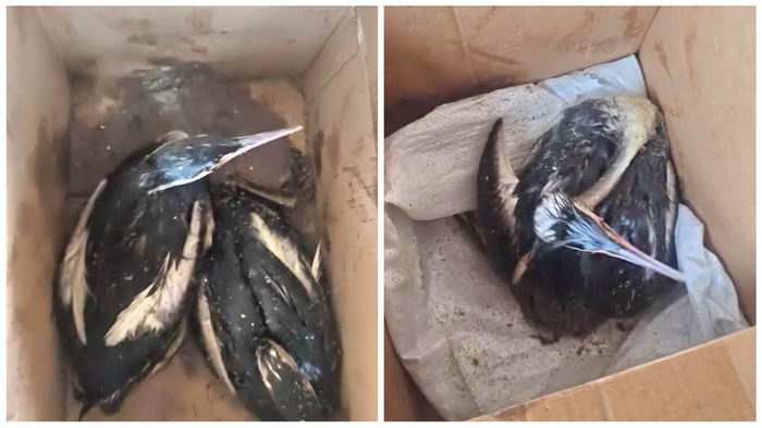 Если вы нашли нашли на берегу моря раненую птицу в масле, то положите ее в коробку, принесите в зоопарк или домой, где помойте с хозяйственным мылом перья. А потом уже точно нужно нести в зоопарк. Потому что птицы обессилены и отпускать их сразу назад нельзя — это привидет к высоким рискам гибели.