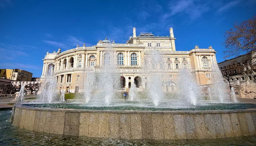 Перед Одесской оперой включили фонтан после «зимней спячки»