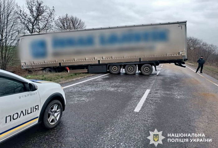 Сьогодні днем на трасі Одеса-Рені між населеними пунктами Байрамча та Сарата Білгород-Дністровського району сталася ДТП, що призвело до ускладнення руху автомобілів. Водій вантажівки втратив керування через ожеледицю і з’їхав з дороги, а причепом перекрив обидві смуги руху. В поліції повідомили, що на щастя, ніхто не постраждав.