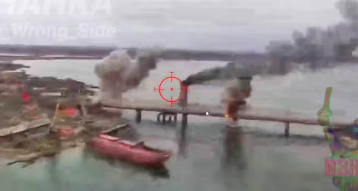 На минулих вихідних російські окупанти намагалися знищити міст в курортному селищі Затока. Велика зграя російських БпЛА типу “шахед” атакувала міст. Одночасно з акваторії Чорного моря російські бомбардувальники Су-34 випустили неназвану кількість керованих авіабомб. Російські розвідувальні дрони без перешкод знімали на відео кожний вибух з різних ракурсів. Також відеокамери були на деяких “шахедах”, якими керували дистанційно. Відео наймасштабнішої та безпрецедентної атаки опублікували на джерелах окупантів. Однак мети вони так і не досягли – міст отримав пошкодження, але не зруйнований.