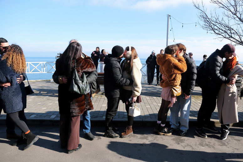 Вчора в День всіх закоханих в Одесі на березі моря відбувся невеликий романтичний флешмоб, в якому прийняли участь 29 пар. За сигналом закохані одночасно почали цілуватися. Хоч пар було всього 29, результат було зафіксовано в Реєстрі рекордів України, як найбільша кількість пар, які одночасно цілуються біля моря. Таким чином, це може стати новою традицією в Одесі – мотивувати закоханих приходити 14 лютого на берег моря та цілуватися, щоб побити попередній рекорд. Фото опублікував одеський фотограф Вячеслав Оніщенко в Фейсбуці.
