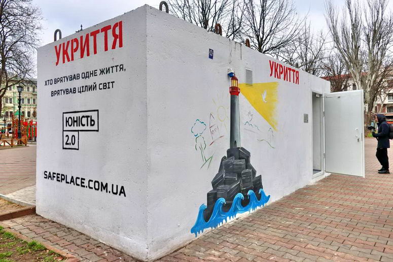 В историческом центре Одессы в зоне ЮНЕСКО установили первое мобильное укрытие — железо-бетонная капсула, которая может вместить до 30 человек и спасти их от обломков и ударной волны во время внезапного обстрела. Укрытие установили рядом с большой детской площадкой. Как сообщили в Одесской мэрии, благотворительный фонд «Юность 2.0» реализует проект SafeplaceUA по установке таких защитных сооружений в местах скопления людей – парках, конечных остановках общественного транспорта и т.д. Это уже седьмое укрытие в Одессе, установленное фондом, и юбилейное — 50-е в Украине.